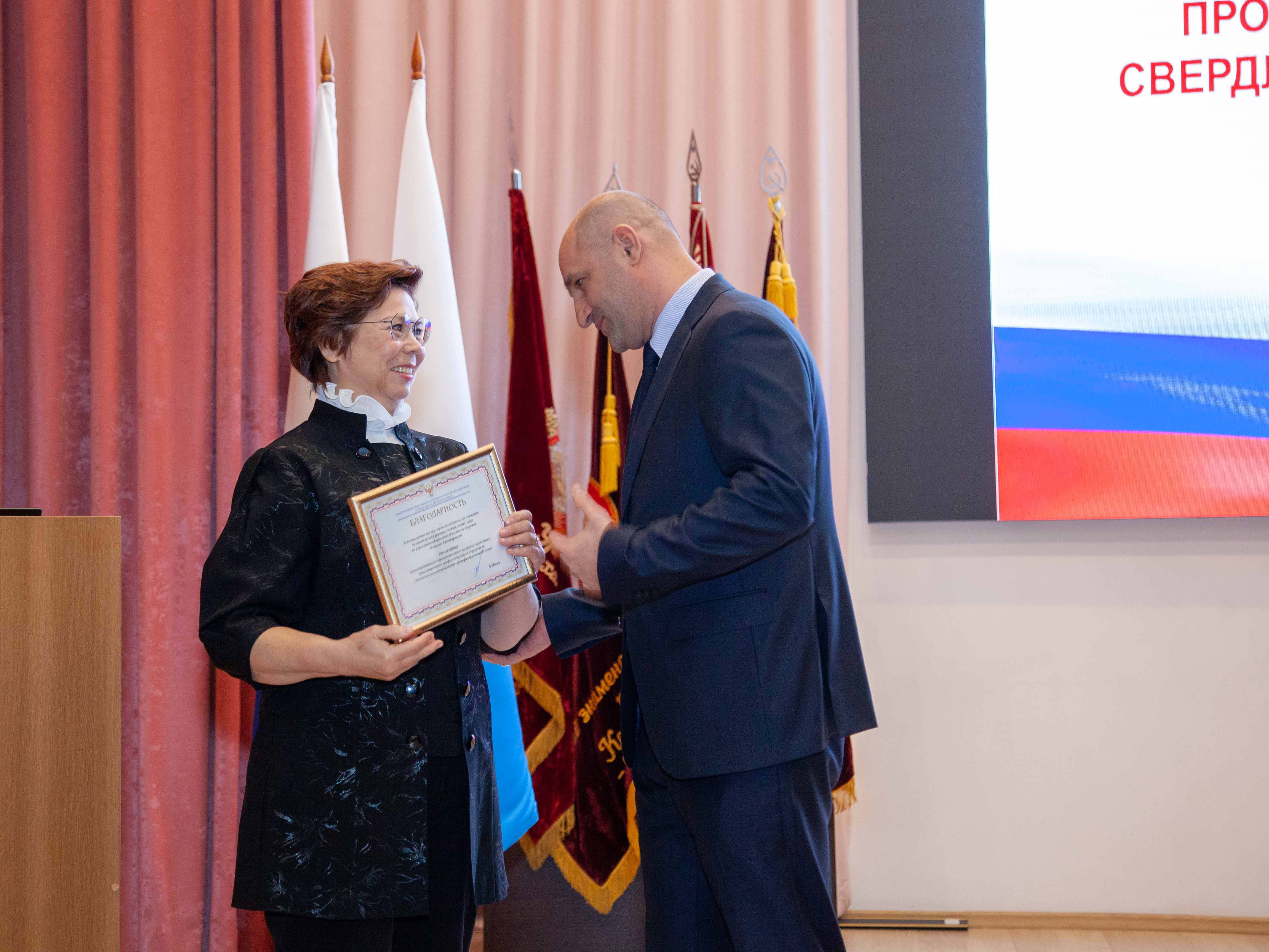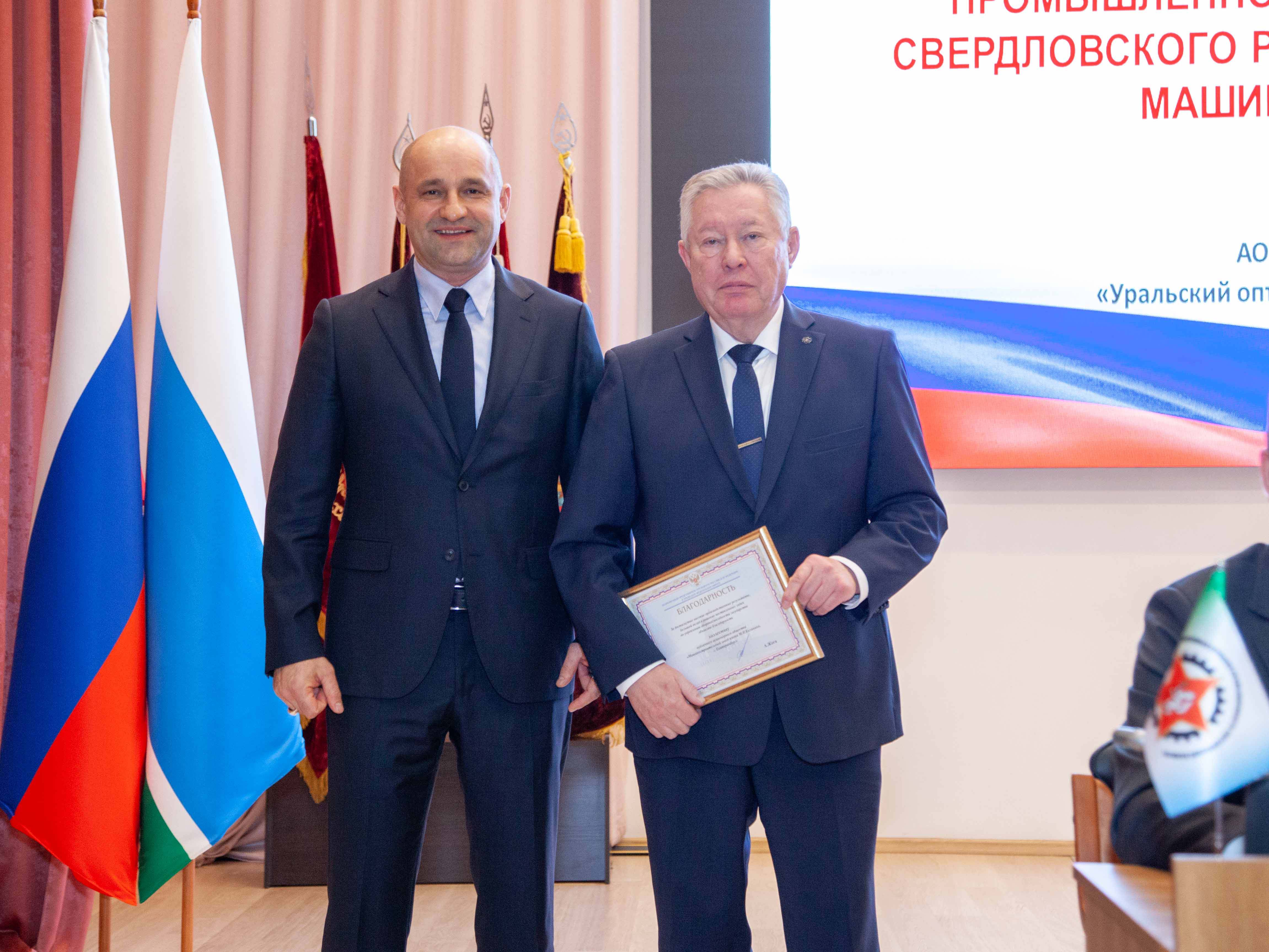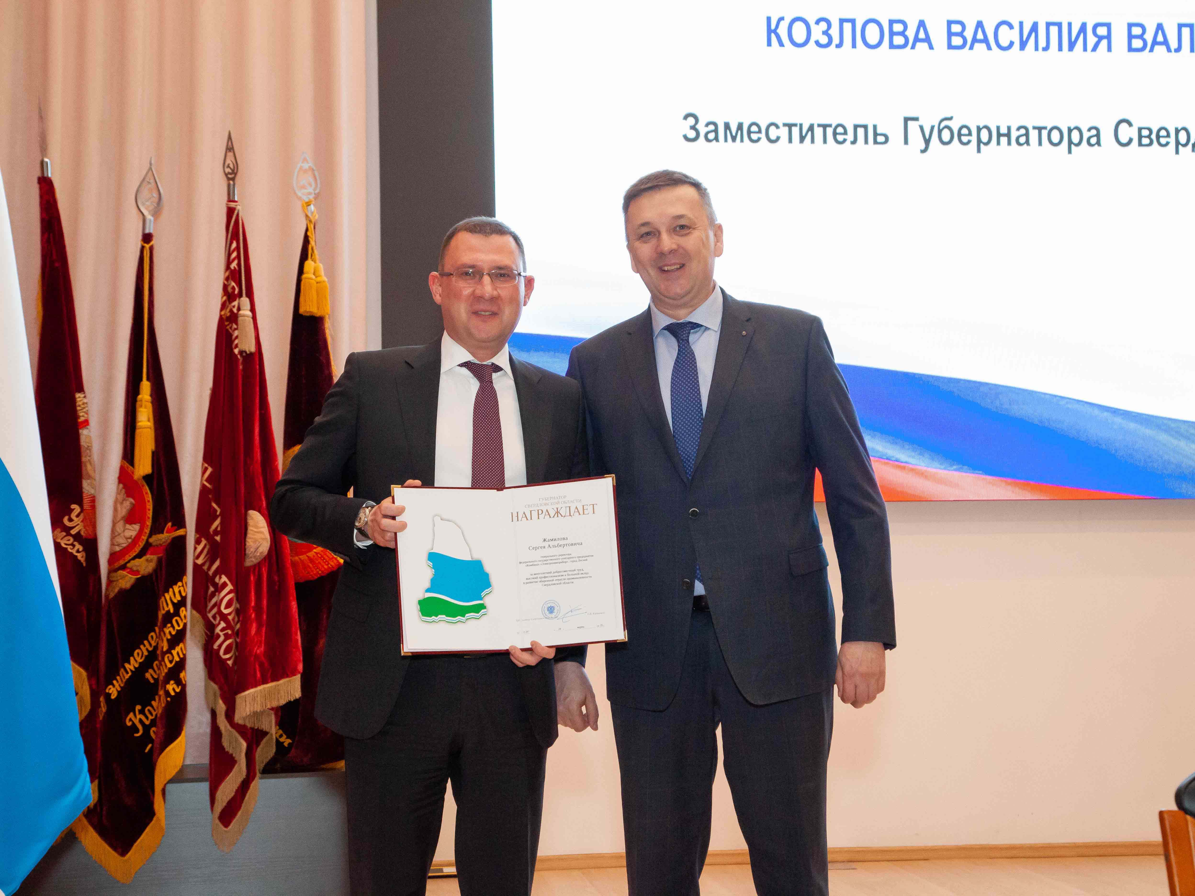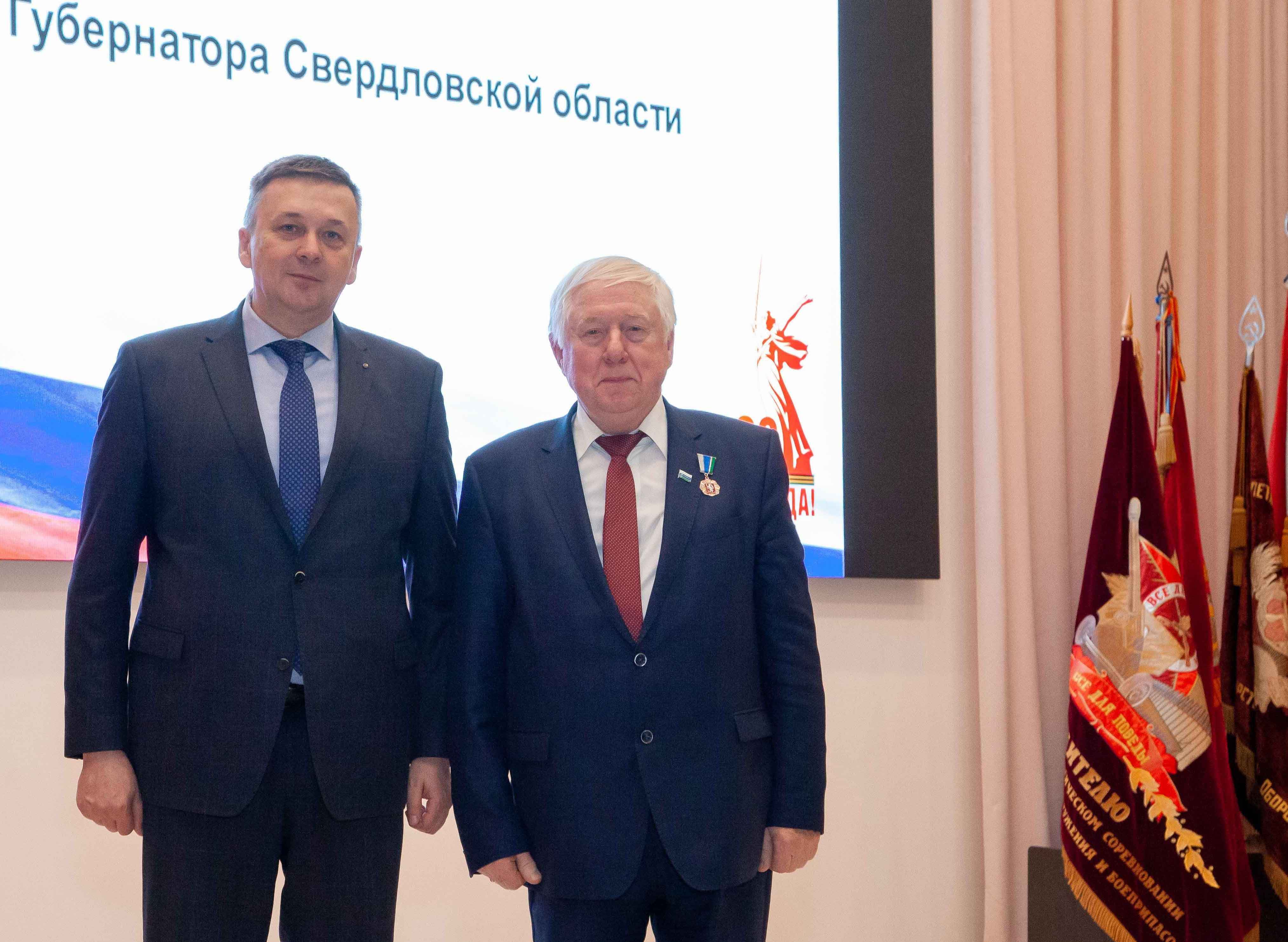 Василий Валерьевич вручил Почетные грамоты Губернатора Свердловской области руководителям предприятий: Рощупкину Владимиру Николаевичу, исполнительному директору НПК «Уралвагозавод», Жамилову Сергею Альбертовичу, генеральному директору Комбината «Электрохимприбор», Немтинову Валерию Анатольевичу, генеральному директору УПП «Вектор», Емельянову Олегу Борисовичу, генеральному директору Уралтрансмаша, Дудину Александру Викторовичу, генеральному директору Уральского электрохимического комбината, Овчинникову Николаю Алексеевичу, генеральному директору Завода № 9.