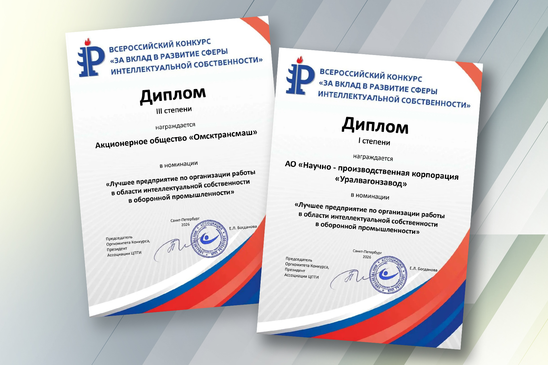 Концерн «Уралвагонзавод» Госкорпорации Ростех завоевал награды на XVI Всероссийском конкурсе «За вклад в развитие сферы интеллектуальной собственности». Уралвагонзавод получил диплом I степени в номинации «Лучшее предприятие по организации работы в области интеллектуальной собственности в оборонной промышленности». В этой же номинации дипломом III степени отмечен Омсктрансмаш.
