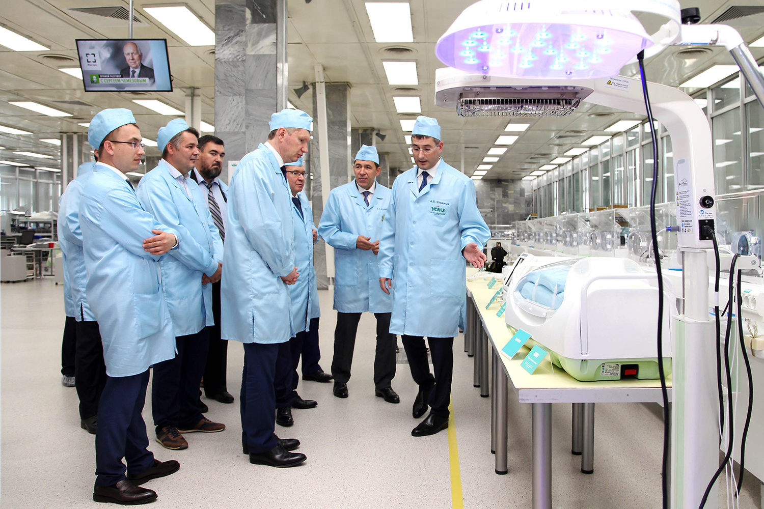 Делегация Минэкономразвития России вместе с губернатором Свердловской области Евгением Куйвашевым посетили Уральский оптико-механический завод (УОМЗ входит в СоюзМаш России). В 2018 году предприятие вступило в нацпроект «Производительность труда». За это время при поддержке экспертов удалось увеличить темпы и объемы выпускаемых инкубаторов интенсивной терапии для новорожденных.